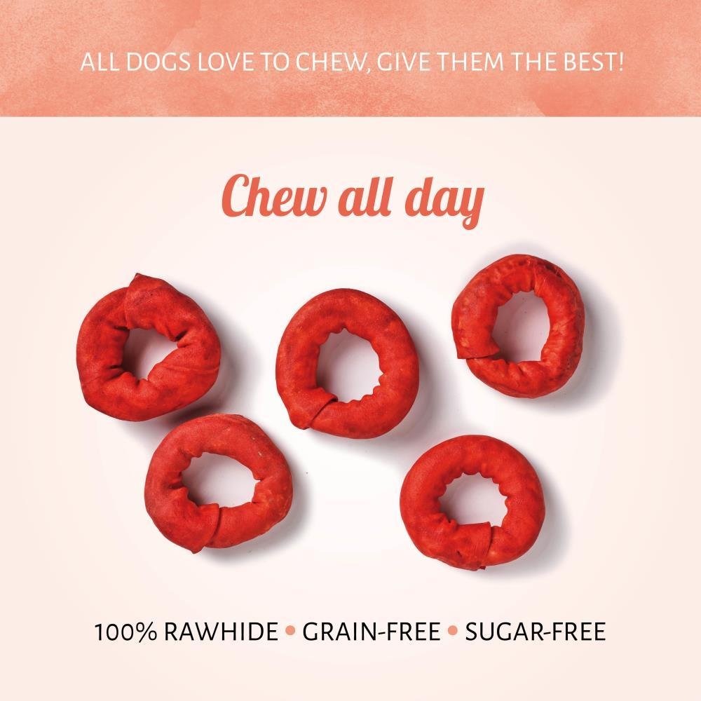 Elke hond bijt dolgraag op onze Donut Barbecue kauwsnacks voor honden. Gemaakt uit runderhuid met een natuurlijke rooksmaak die je hond onweerstaanbaar zal vinden. Geef je hond een gezonde, lekkerdere kauwsnack om zijn kauwbehoefte te stillen.