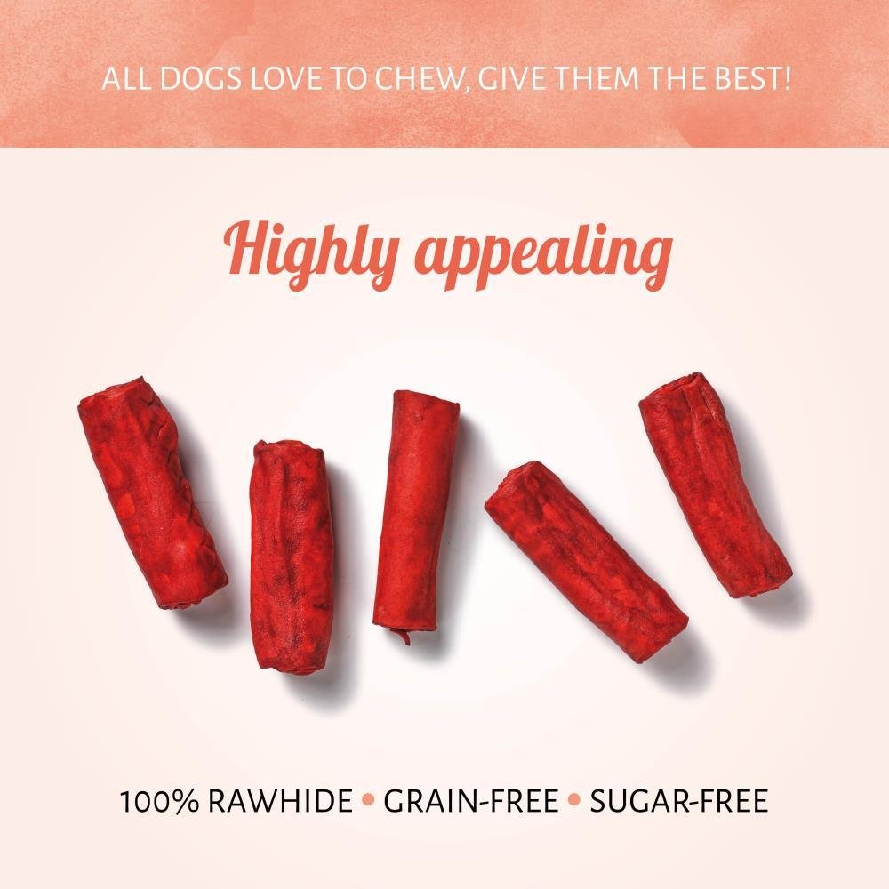 De Roll Barbecue kauwsnacks voor honden zitten boordevol eiwitten, bevatten weinig vetten en hebben een smaak die heel aantrekkelijk is voor je hond. De kauwsnacks van runderhuid bieden een bevredigende, uitdagende kauwervaring voor je vierpotige familielid.