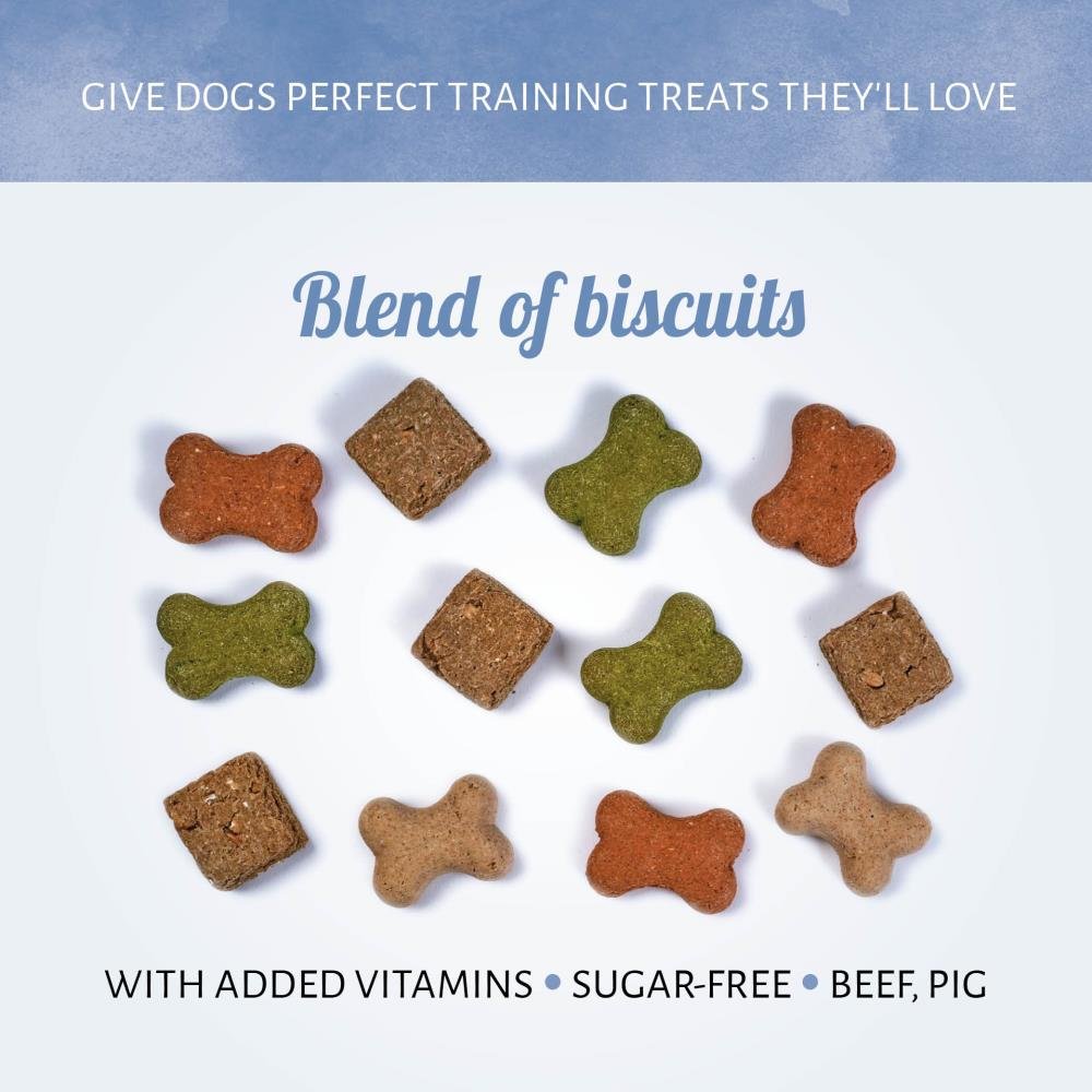 Onze Bonte Mix wordt langzaam gebakken in een oven om de natuurlijke smaken te behouden in alle soorten die je hond met plezier zal vangen, om op te kauwen en op te eten. Deze suikervrije lekkernijen zijn een uitstekende snack, als beloning of om je hond te trainen.