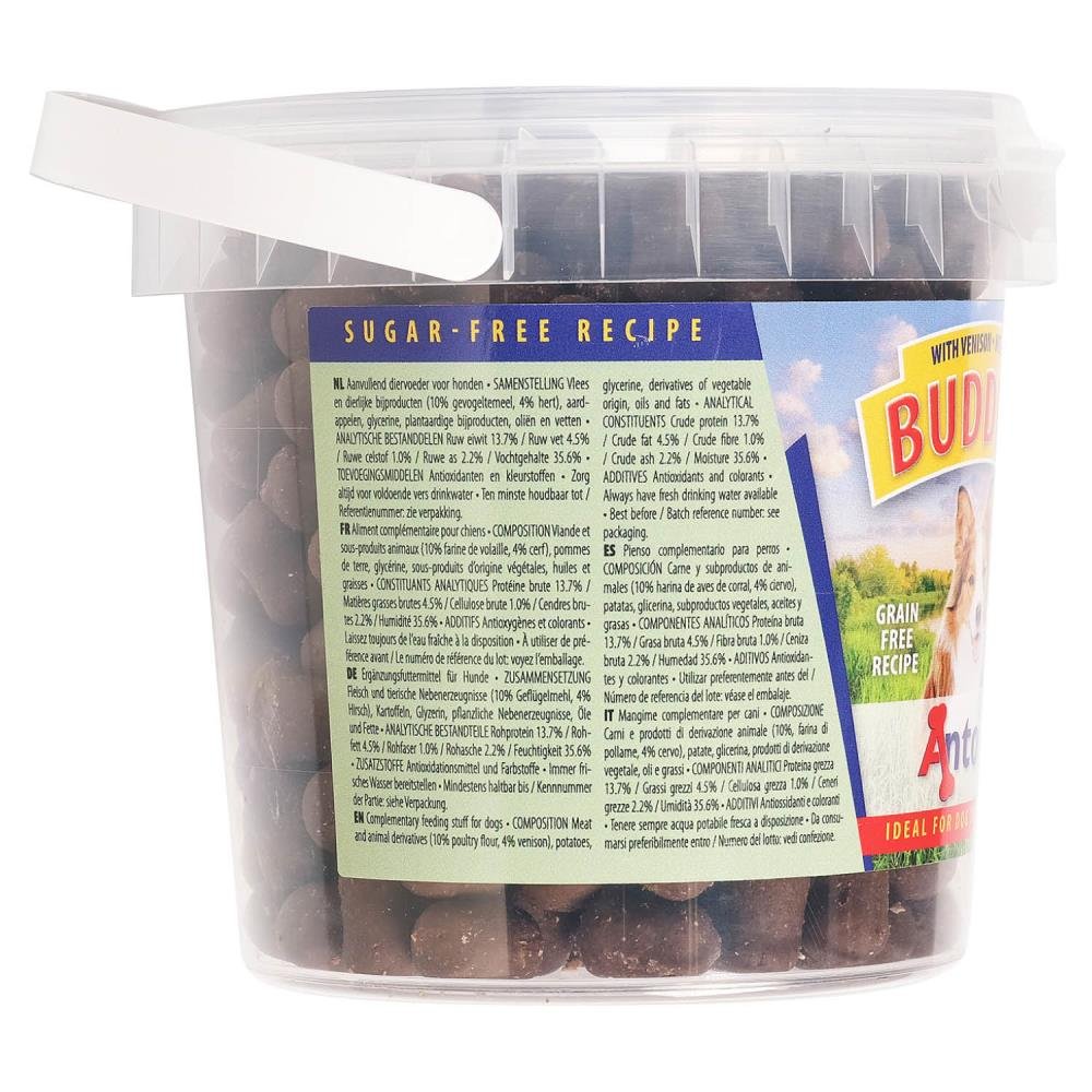 Geef je liefhebbende hond een beloning die voedzaam en heerlijk is met Buddies Hert lekkernijen. Deze zachte en kauwbare lekkernijen zijn gemaakt volgens een graanvrij recept, daarom zijn deze goede versnaperingen perfect voor training of gewoon verwennen.