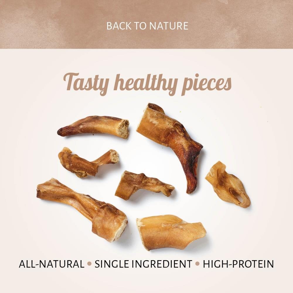 Aanbevolen als snack voor honden. Omdat dit natuurlijke kauwsnacks zijn, kunnen de maten variëren. Verwen je hond op een verantwoordelijke manier en kies snacks die zijn aanbevolen voor de grootte van je hond. Verdeel in kleine stukjes voor kleine honden. Ter bescherming van je huisdieren, let op je hond als je hem of haar iets lekkers geeft. Verwijder kleine of kapotte stukjes om verstikking te voorkomen. Zorg altijd voor vers water. Op een koele, droge plaats bewaren. Dit product is een snack en niet bedoeld als maaltijd. Niet voor menselijke consumptie.