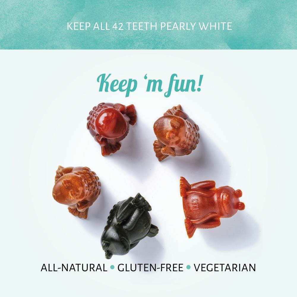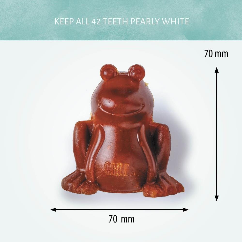 Onze leuke Cerea Frog-vorm helpt tandsteen en tandplak te verwijderen terwijl je hond kauwt. De tandheelkundige kauwsnacks hebben weinig vet, zijn glutenvrij, vegetarisch en volledig natuurlijk. Je hond zal zeker genieten van de heerlijke ingrediënten.