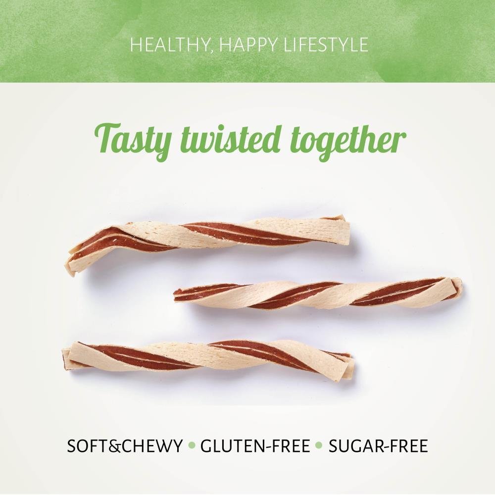 Onze Chicken&Fish Twists zijn gemaakt van repen kip en koolvis in een gedraaide vorm. Ze bevatten van nature weinig vet en hebben een heerlijke smaak waar je hond dol op is. Deze traktaties houden de huid en de vacht gezond.