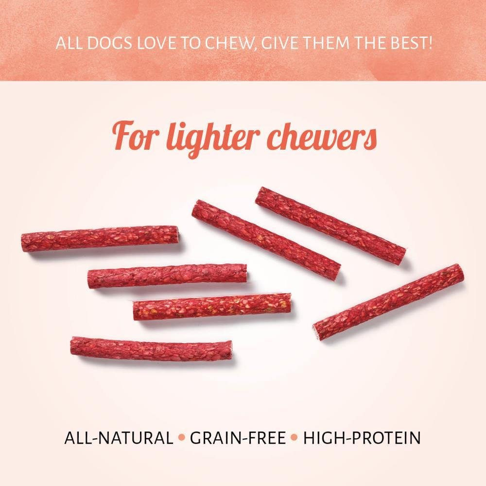 Help je hond om zijn algemene mondhygiëne te onderhouden met onze Crunchy Munchy Sticks Rood. Deze smaakvolle combinatie van runderhuid en rijstmeel is perfect voor lichtere kauwers. Deze kauwsnack helpt je om voor schone tanden en tandvlees te zorgen en is volledig verteerbaar.