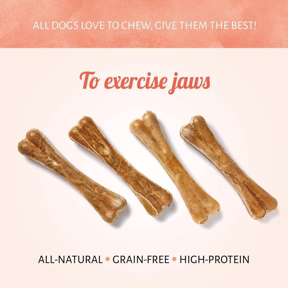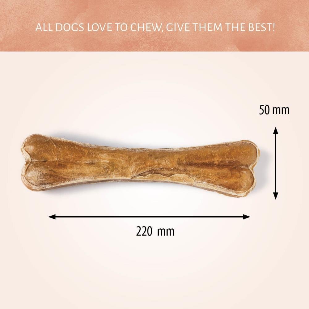 Honden kauwen om hun kaken te trainen, hun tanden schoon te maken en voor hun plezier. Je hond zal het heerlijk vinden om op onze lekkere Geperst Been hondensnacks kauwen. Hij zal dol zijn op de smaak, de klassieke vorm en natuurlijk ook op de grootte!