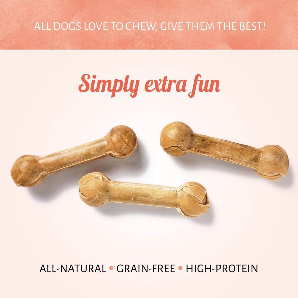 Aanbevolen als snack voor honden. Verwen je hond op een verantwoordelijke manier en kies snacks die zijn aanbevolen voor de grootte van je hond. Ter bescherming van je huisdieren, let op je hond als je hem of haar iets lekkers geeft. Zorg altijd voor vers water. Op een koele, droge plaats bewaren.