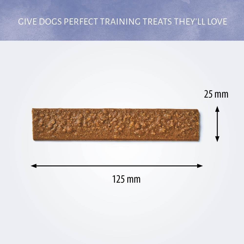 Aanbevolen als snack voor honden. Verwen je hond op een verantwoordelijke manier en kies snacks die zijn aanbevolen voor de grootte van je hond. Honden < 5 kg (XS): 1 stuks per dag. 6-10 kg (S): 1,5 stuks per dag. 11-25 kg (M): 3,5 stuks per dag. 26-35 kg (L): 4,5 stuks per dag. Verdeel in kleine stukjes voor kleine honden. Ter bescherming van je huisdieren, let op je hond als je hem of haar iets lekkers geeft. Zorg altijd voor vers water. Op een koele, droge plaats bewaren. Dit product is een snack en niet bedoeld als maaltijd.
