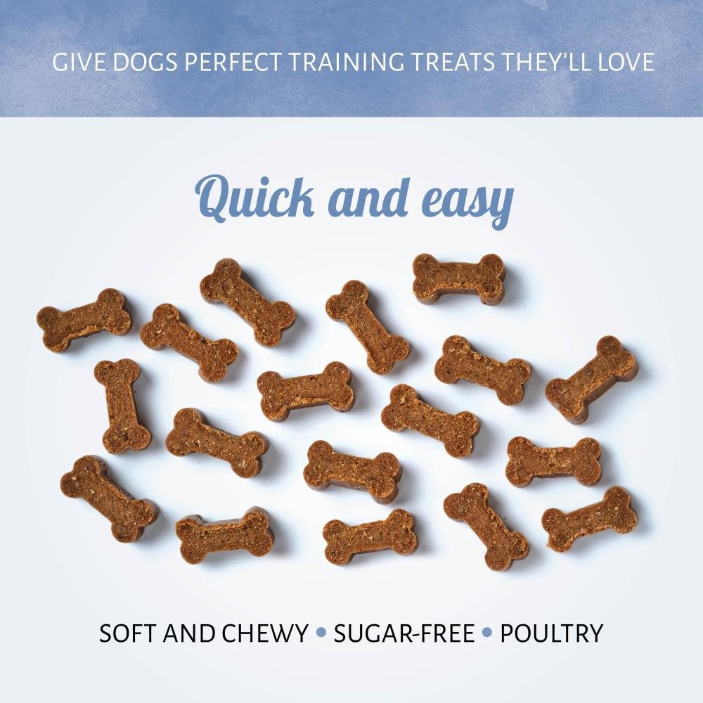 Maak de training leuker voor je hond met onze Mini Bones Kip hondenlekkernijen. Gemaakt met echt gevogelte als het belangrijkste ingrediënt, hebben deze snacks de juiste grootte voor een trainingsbeloning die snel en gemakkelijk te geven is.