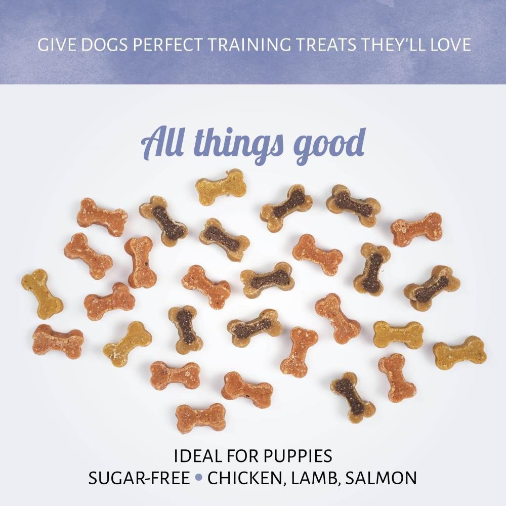 Vol met lekkernijen met kip-, lam- en zalmsmaak en een aroma waar je hond van gaat watertanden, zijn onze Mini Mix hondenlekkernijen een must-have voor training. Je hond zal de verleidelijke geur van deze lekkere traktaties snel herkennen.