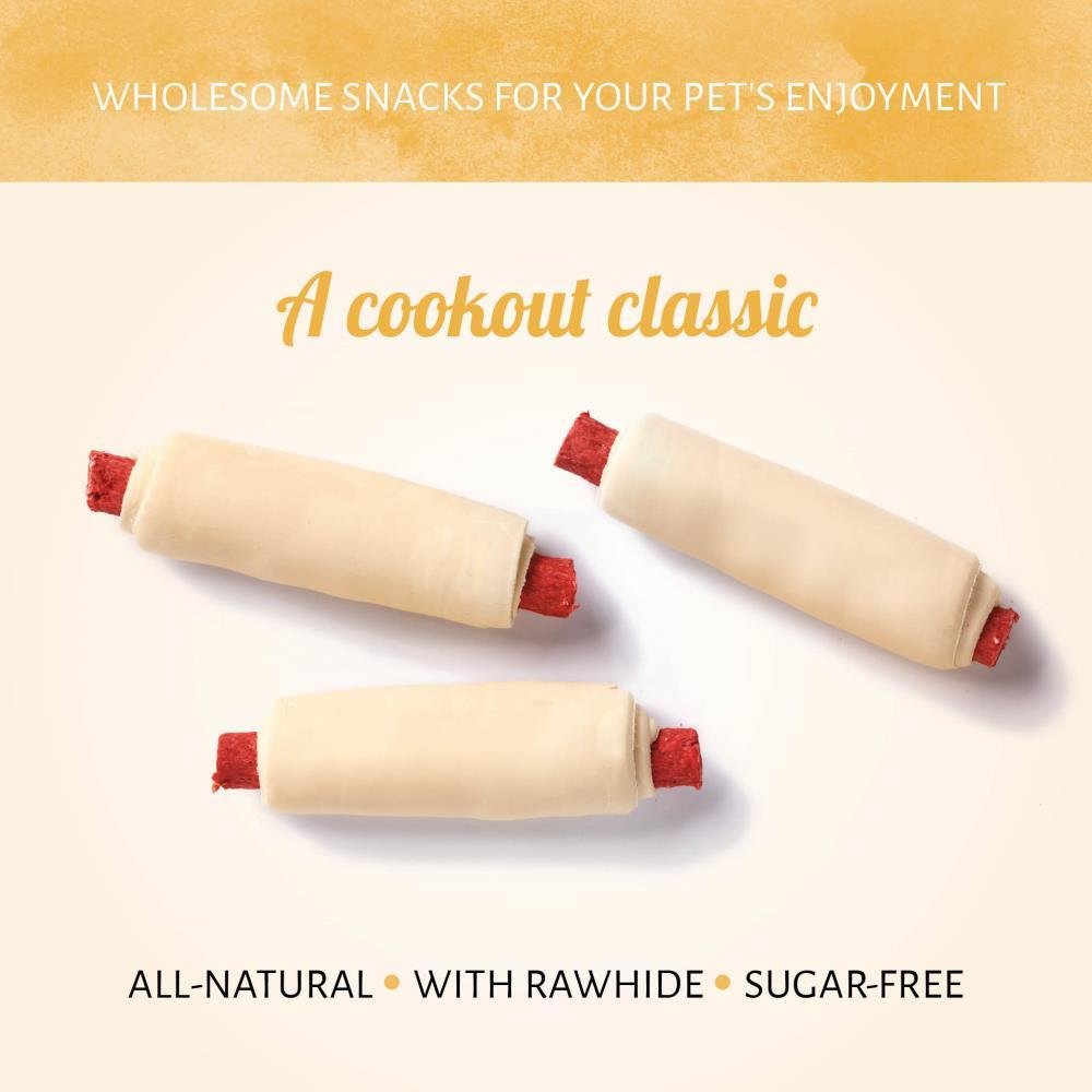 Breng de innerlijke fijnproever in je hond naar boven met hotdog! Eindelijk een klassieke snack die jij en je hond kunnen delen. Je hond één van deze Munchy Hotdogs geven is een geweldige manier om hem te betrekken bij een barbecue in de tuin.