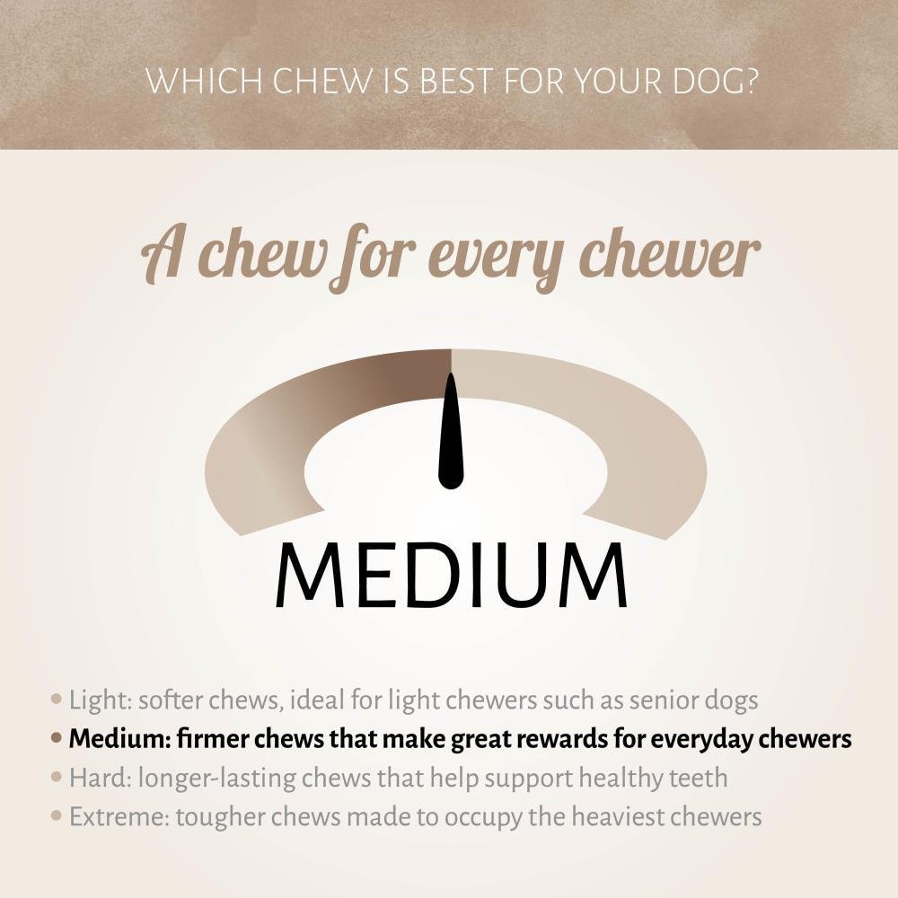 Aanbevolen als snack voor honden. Omdat dit natuurlijke kauwsnacks zijn, kunnen de maten variëren. Verwen je hond op een verantwoordelijke manier en kies snacks die zijn aanbevolen voor de grootte van je hond. Verdeel in kleine stukjes voor kleine honden. Ter bescherming van je huisdieren, let op je hond als je hem of haar iets lekkers geeft. Verwijder kleine of kapotte stukjes om verstikking te voorkomen. Zorg altijd voor vers water. Op een koele, droge plaats bewaren. Dit product is een snack en niet bedoeld als maaltijd. Niet voor menselijke consumptie.