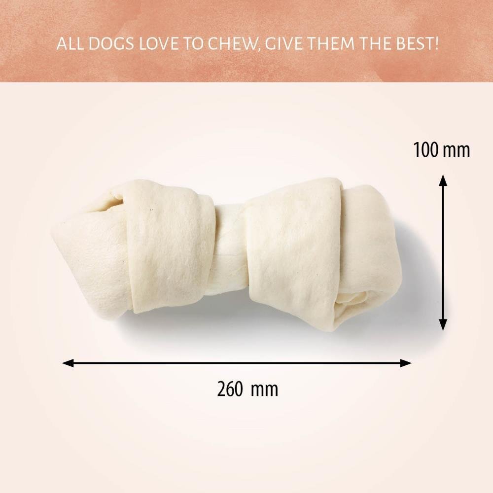 Je vriendje zal dol zijn op het Raw Hide White Knotted Bone om op te kauwen, omdat het gemaakt is van runderhuid. De textuur helpt om opgebouwd tandsteen op natuurlijke wijze te verwijderen en om de tandgezondheid van je hond te verbeteren.