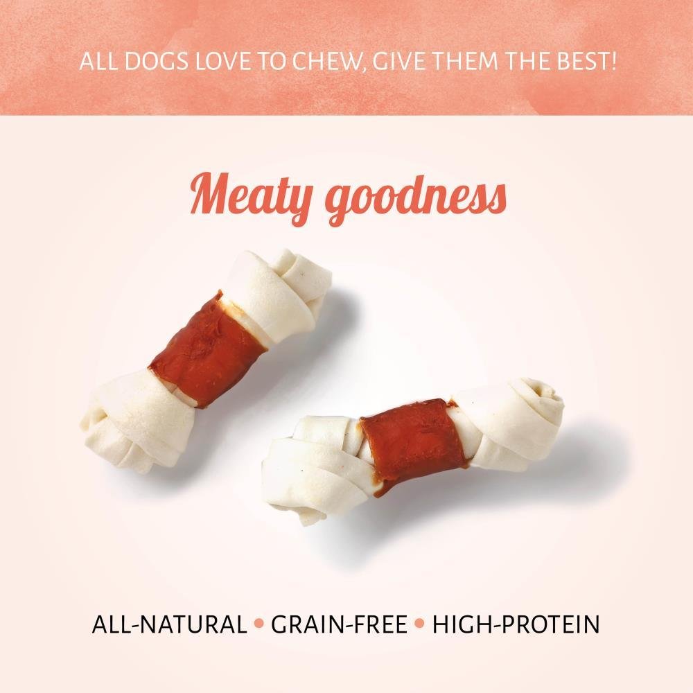 Je hond zal zeker dol zijn op ons Raw Hide White + Chicken Knotted Bone. Deze heerlijke rolletjes bieden dubbel zoveel smaak omdat er echte, heerlijke kip rondgedraaid zit om voor zoveel mogelijk natuurlijke vleessmaak te zorgen.