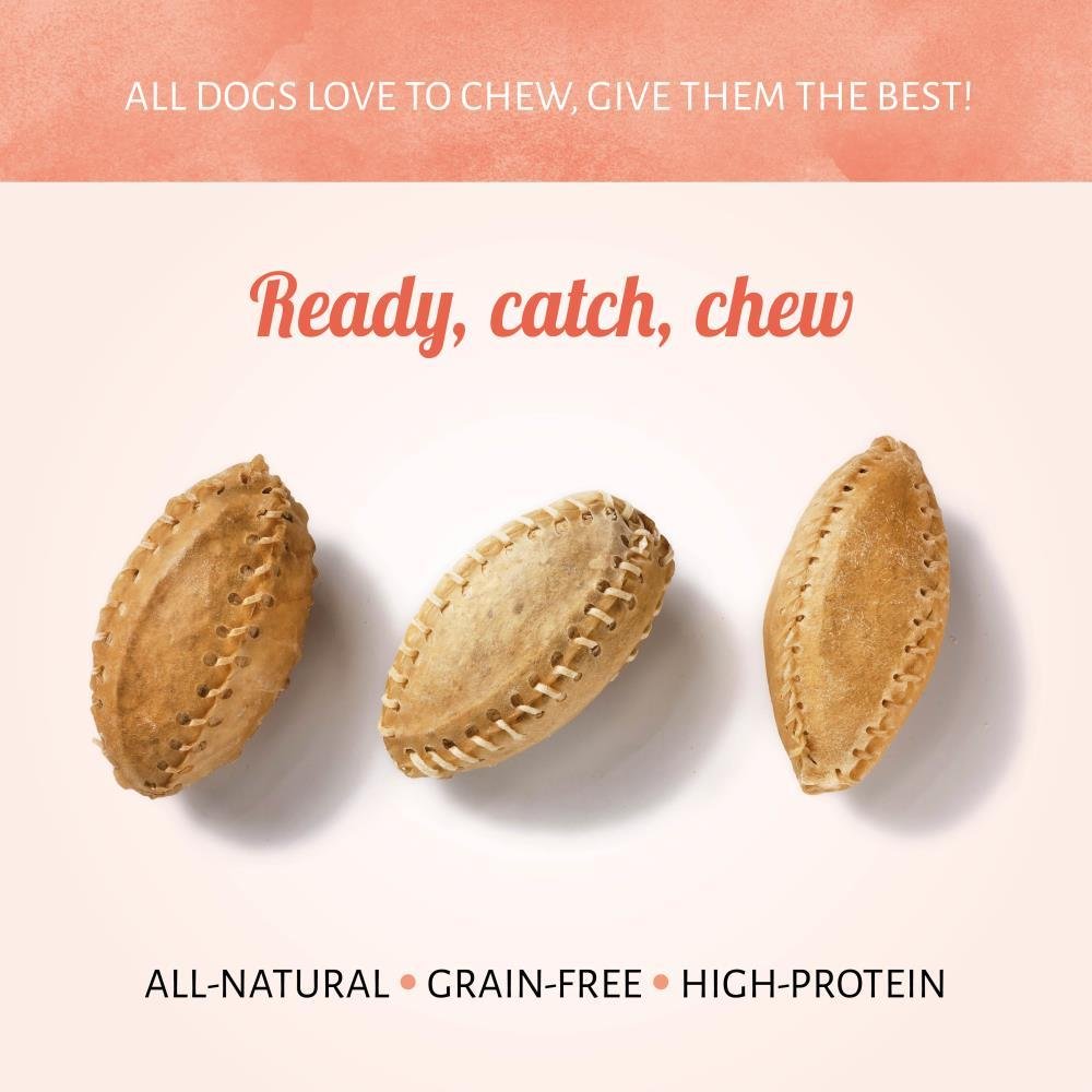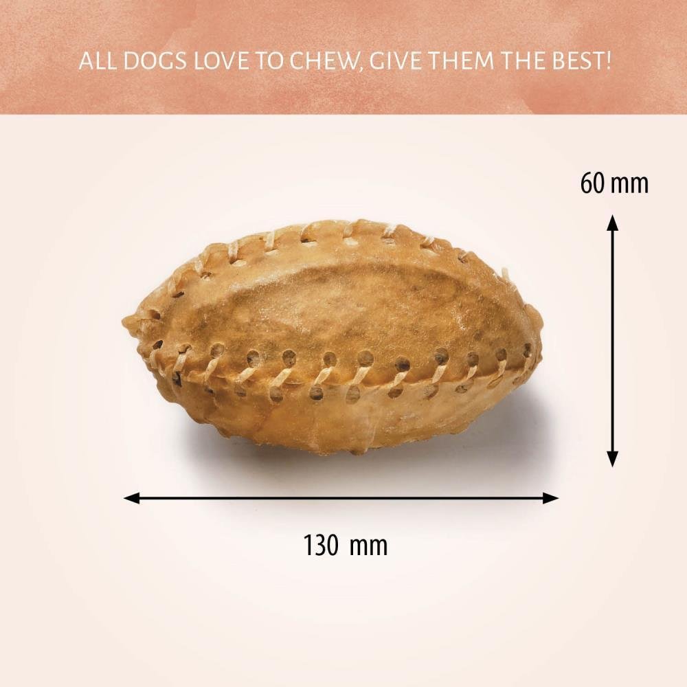 Klaar voor de start? Vang! Trakteer je hond op enkele smakelijke kauwsnacks met onze Rugbybal Deze snack in de vorm van een Amerikaanse football is gemaakt uit volledig natuurlijke runderhuid. Hij ziet er niet alleen goed uit, maar voelt ook zo aan. Je hond zal met plezier rennen voor deze harde, sterke kauwsnack.