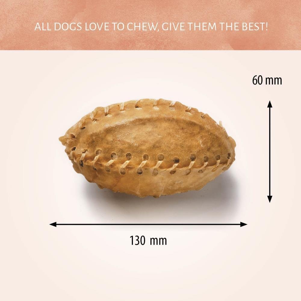 Geef je hond een Rugbybal kauwsnack, een snack waar je hond voor naar je toe zal komen rennen. Deze kauwsnacks zijn gemaakt uit volledig natuurlijke runderhuid en zijn een uitstekende manier om je hondenvriend te motiveren en belonen.