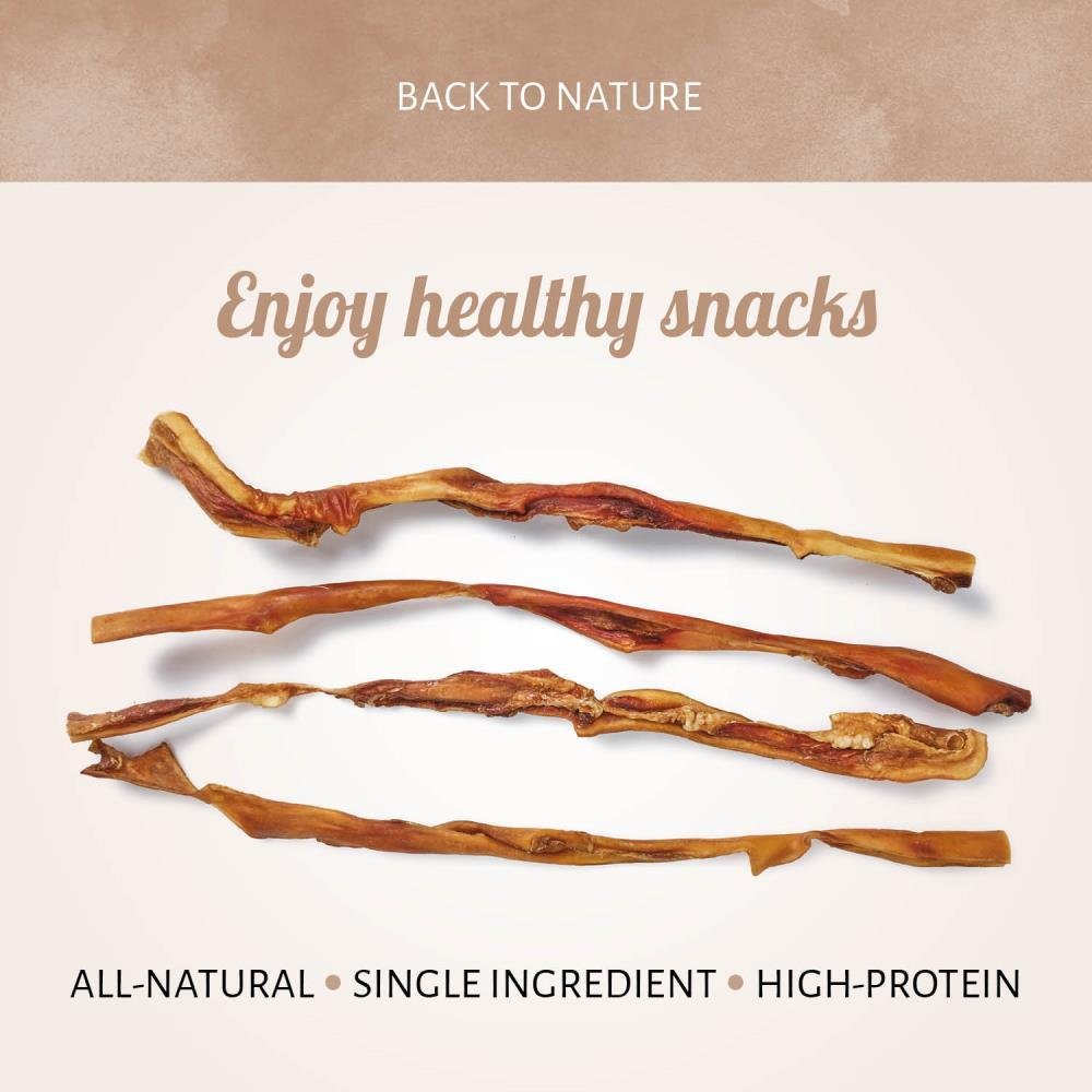 Aanbevolen als snack voor honden. Omdat dit natuurlijke kauwsnacks zijn, kunnen de maten variëren. Verwen je hond op een verantwoordelijke manier en kies snacks die zijn aanbevolen voor de grootte van je hond. Ter bescherming van je huisdieren, let op je hond als je hem of haar iets lekkers geeft. Verwijder kleine of kapotte stukjes om verstikking te voorkomen. Zorg altijd voor vers water. Op een koele, droge plaats bewaren. Dit product is een snack en niet bedoeld als maaltijd. Niet voor menselijke consumptie.