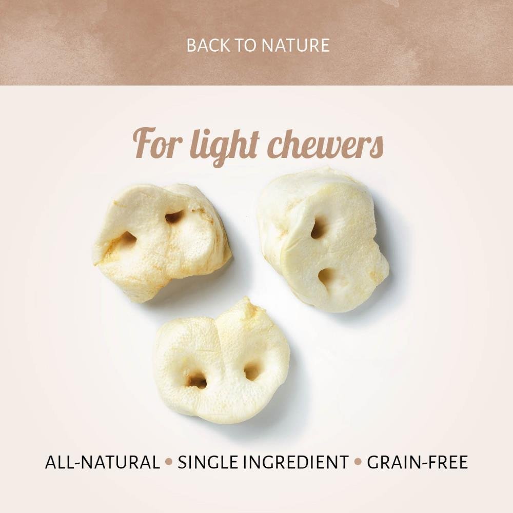 Aanbevolen als snack voor honden. Omdat dit natuurlijke kauwsnacks zijn, kunnen de maten variëren. Verwen je hond op een verantwoordelijke manier en kies snacks die zijn aanbevolen voor de grootte van je hond. Verdeel in kleine stukjes voor kleine honden. Ter bescherming van je huisdieren, let op je hond als je hem of haar iets lekkers geeft. Verwijder kleine of kapotte stukjes om verstikking te voorkomen. Zorg altijd voor vers water. Op een koele, droge plaats bewaren. Dit product is een snack en niet bedoeld als maaltijd. Niet voor menselijke consumptie.