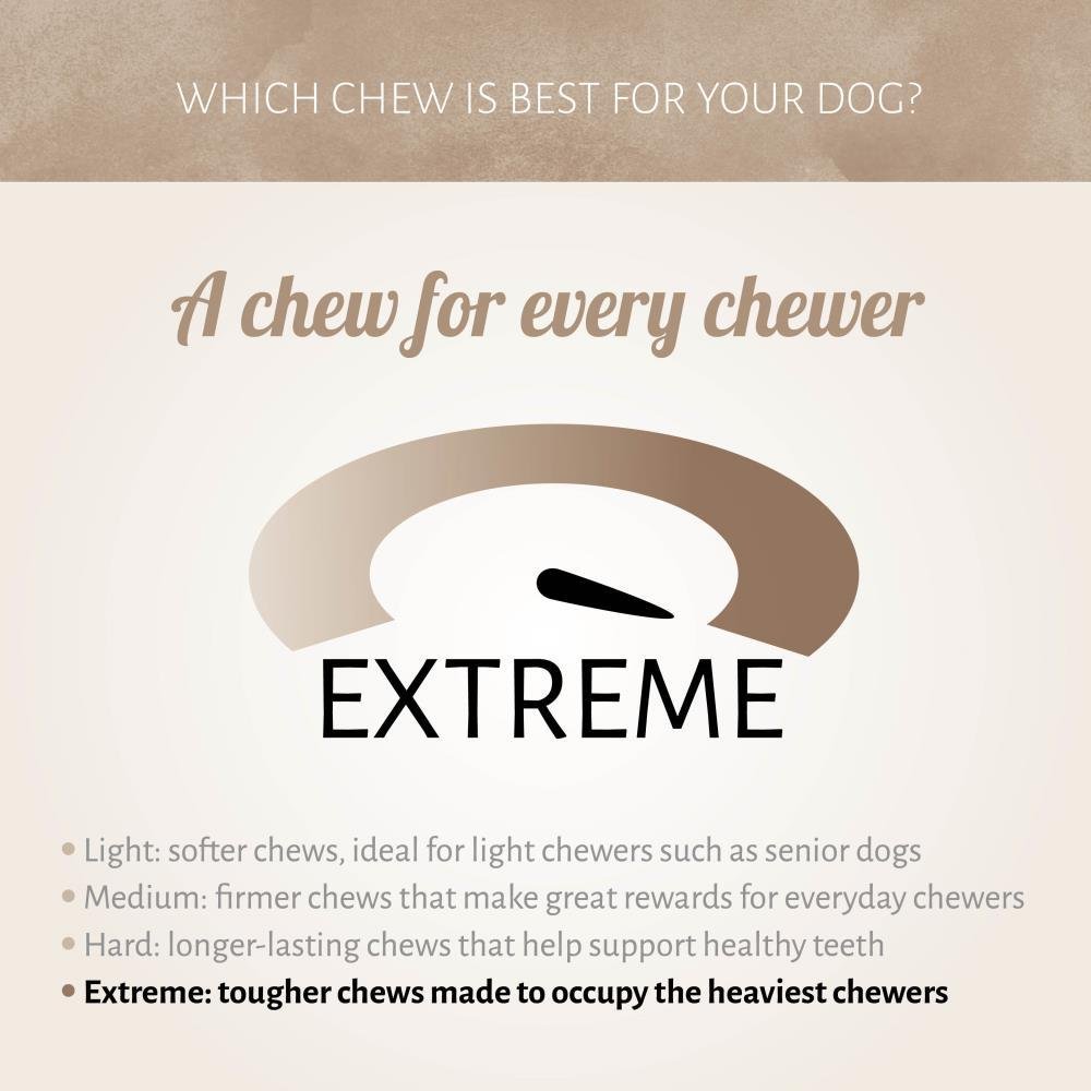 Aanbevolen als snack voor honden. Omdat dit natuurlijke kauwsnacks zijn, kunnen de maten variëren. Verwen je hond op een verantwoordelijke manier en kies snacks die zijn aanbevolen voor de grootte van je hond. Ter bescherming van je huisdieren, let op je hond als je hem of haar iets lekkers geeft. Verwijder kleine of kapotte stukjes om verstikking te voorkomen. Zorg altijd voor vers water. Op een koele, droge plaats bewaren. Dit product is een snack en niet bedoeld als maaltijd. Niet voor menselijke consumptie.